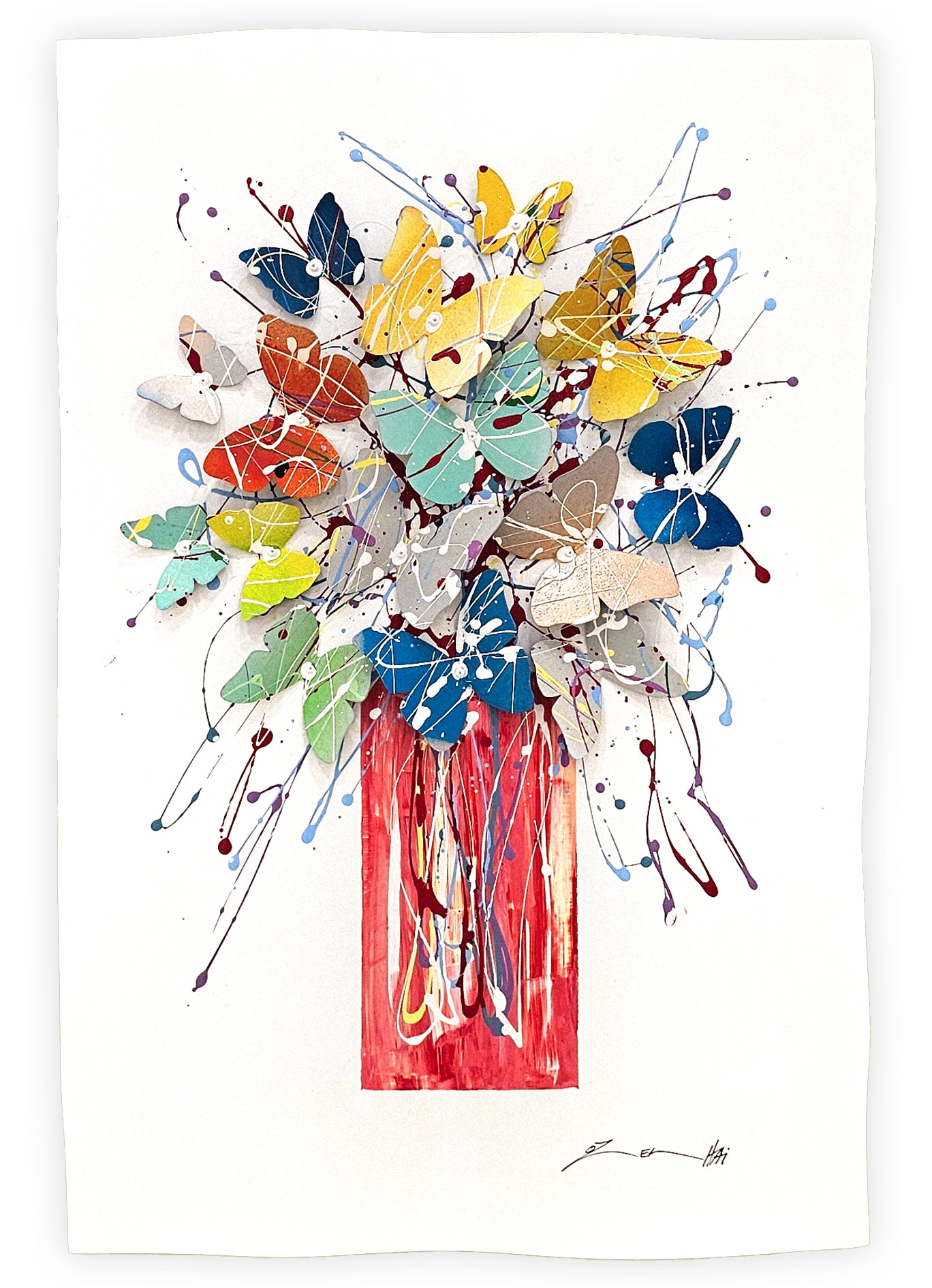 Artist: Oz El HaiMedium: Mixed media on wood, 3D butterflies, car paint with lacquer finishDimensions: 45×45 cmEdition: Unique original – comes with Certificate of Authenticity This...