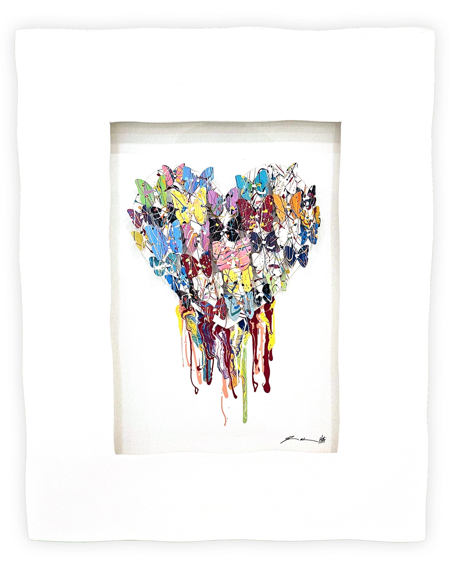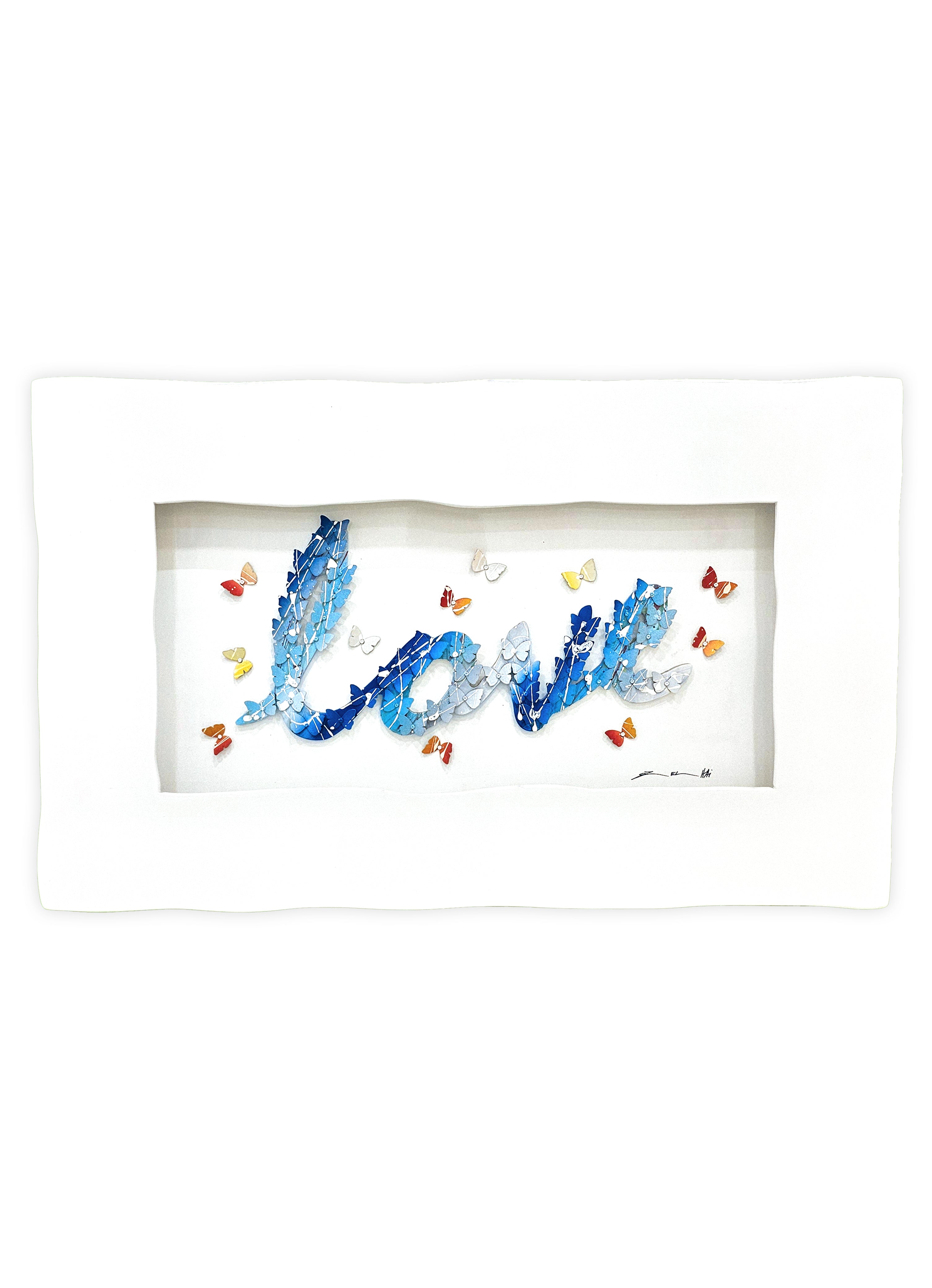 Artist: Oz El HaiTitle: LoveMedium: Mixed Media on Curved Wood with Metal ButterfliesDimensions: 80 × 50 cmEdition: Unique original – includes Certificate of Authenticity This Love...