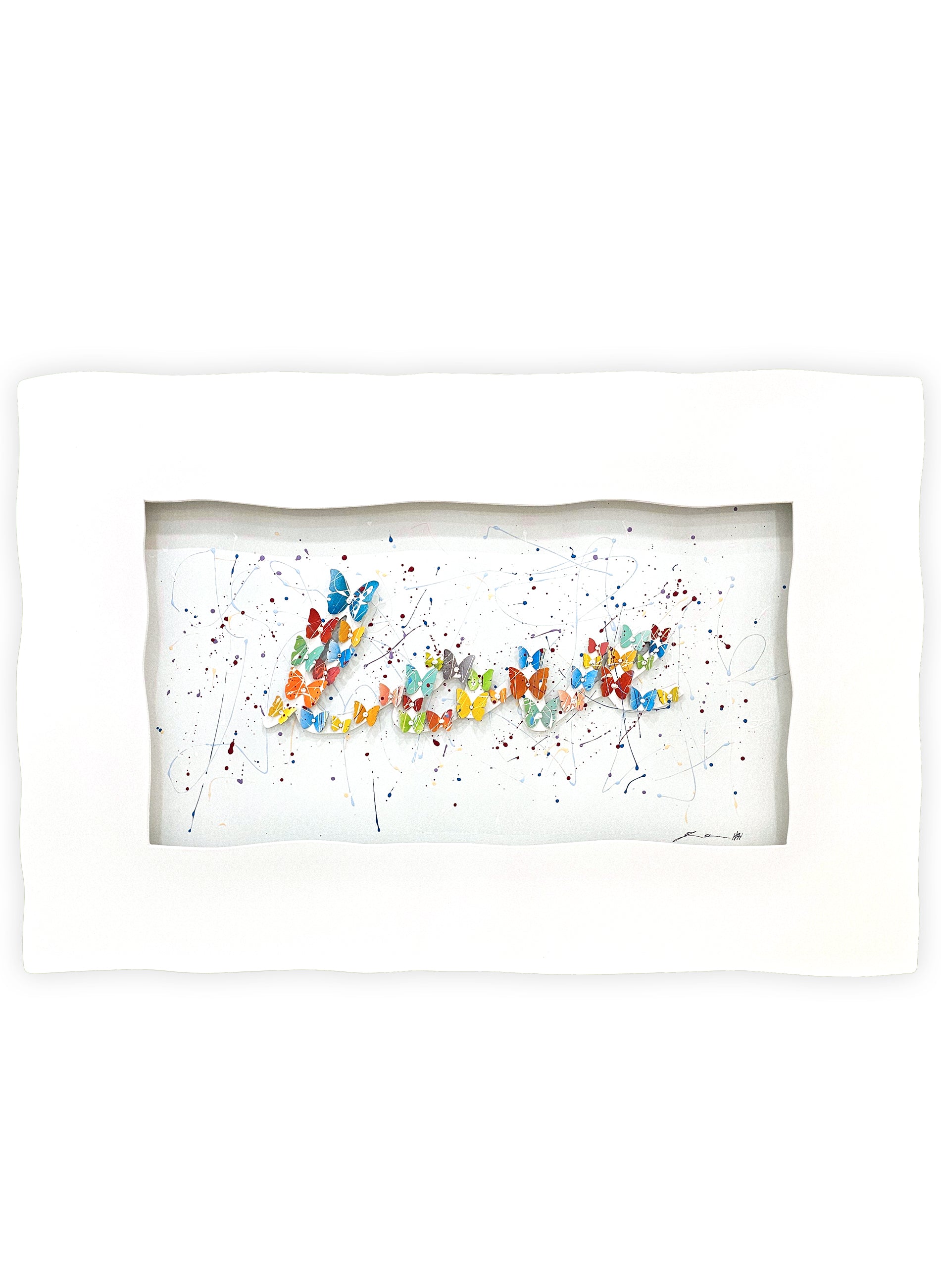 Artist: Oz El HaiTitle: LoveMedium: Mixed Media on Curved Wood with Metal ButterfliesDimensions: 120 × 80 cmEdition: Unique original – includes Certificate of Authenticity Love by...