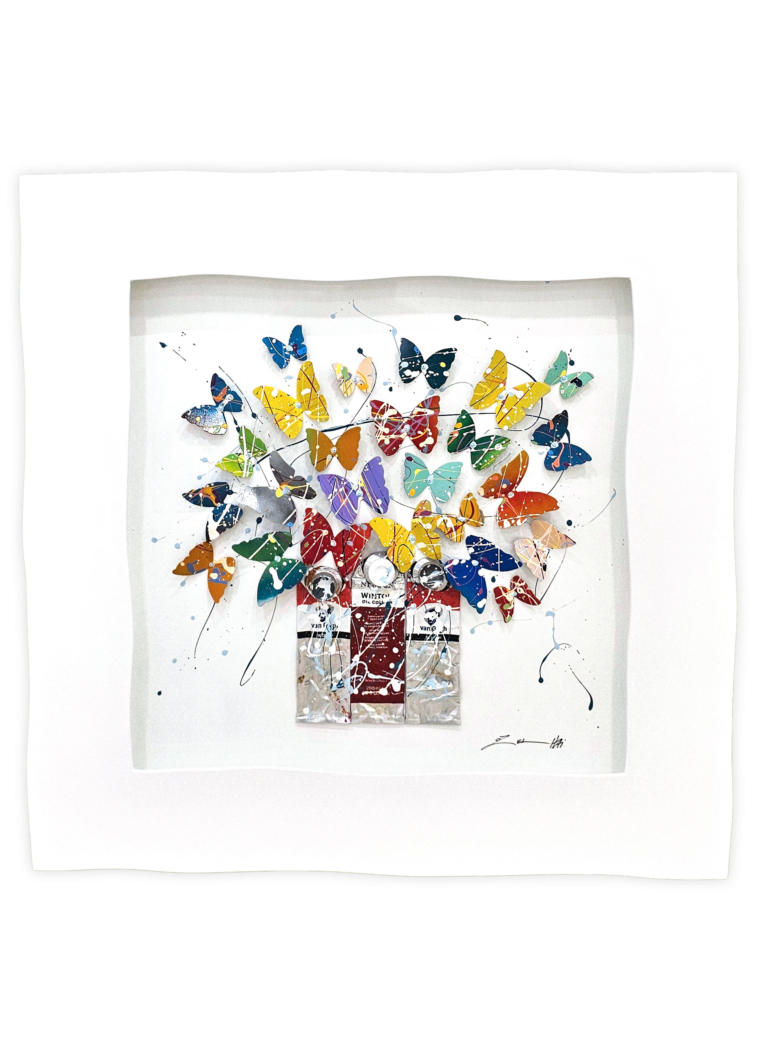 Artist: Oz El HaiTitle: Paint Tubes Tree of LifeMedium: Mixed Media on Curved Wood with Metal ButterfliesDimensions: 120 × 80 cmEdition: Unique original – includes Certificate...
