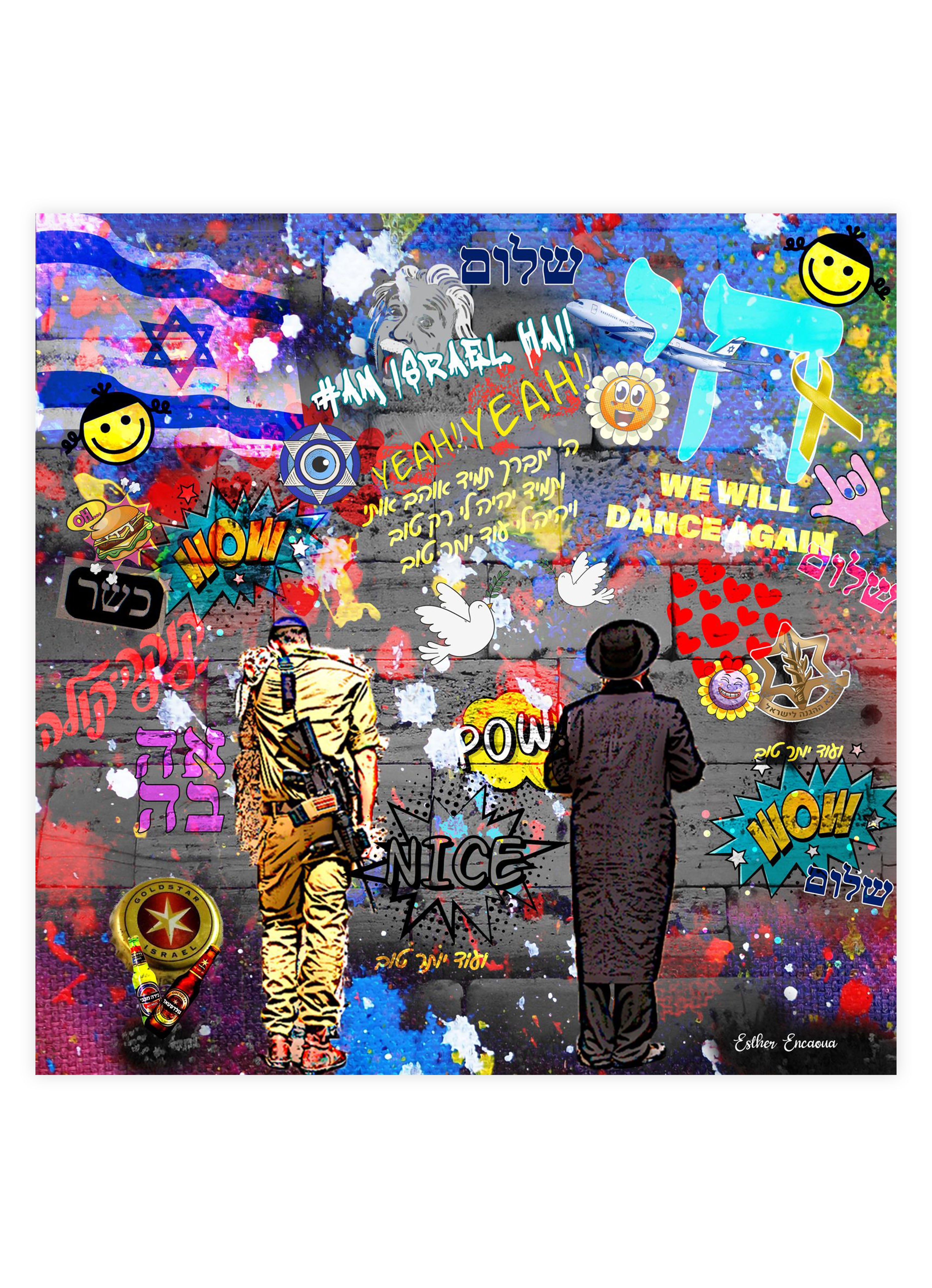 Artist: Esther EncaouaMedium: Plexiglass on aluminum, hand-paintedDimensions: 90×90 cmEdition: Unique original – comes with Certificate of Authenticity Together for Israel by Esther Encaoua is a bold...