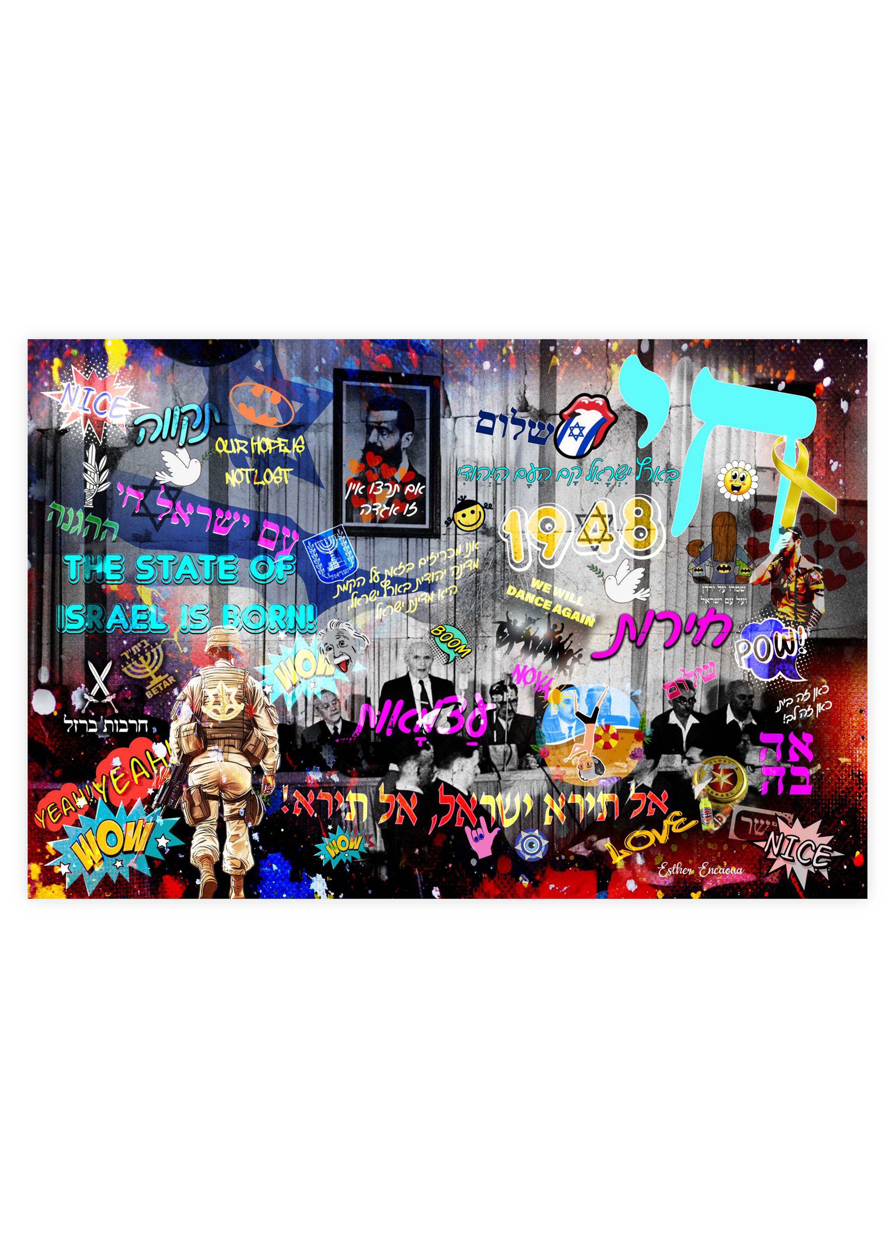 Artist: Esther EncaouaMedium: Plexiglass on aluminum, hand-paintedDimensions: 90×90 cmEdition: Unique original – comes with Certificate of Authenticity Herzl’s Vision by Esther Encaoua is a vibrant Pop...