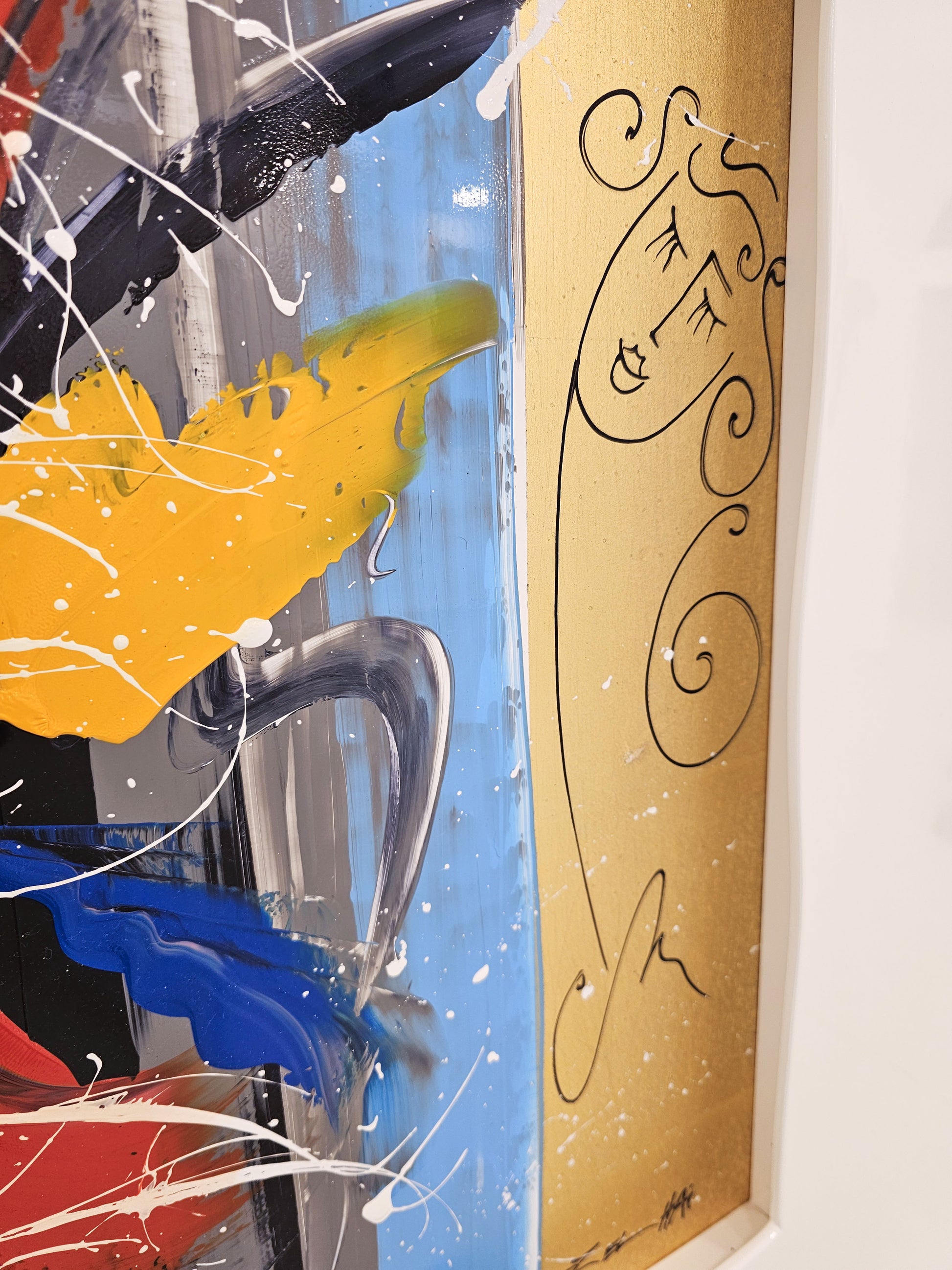 The integrated sculptural frame, also hand-painted, enhances its three-dimensional presence, making it not only a painting but a statement of cultural identity. This original work is ready to hang and serves as a profound centerpiece for any modern collection.