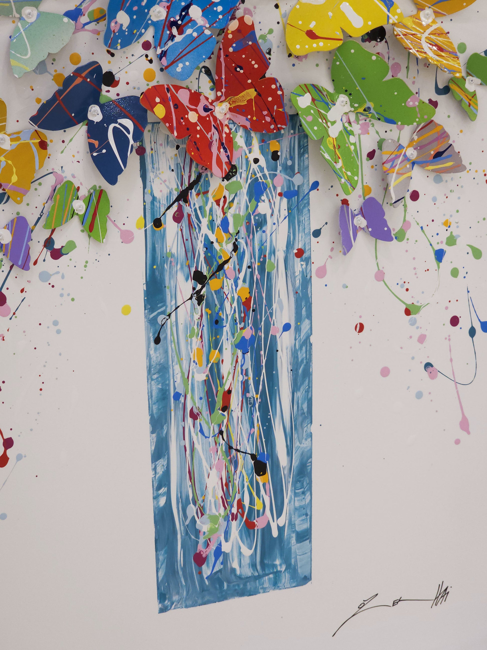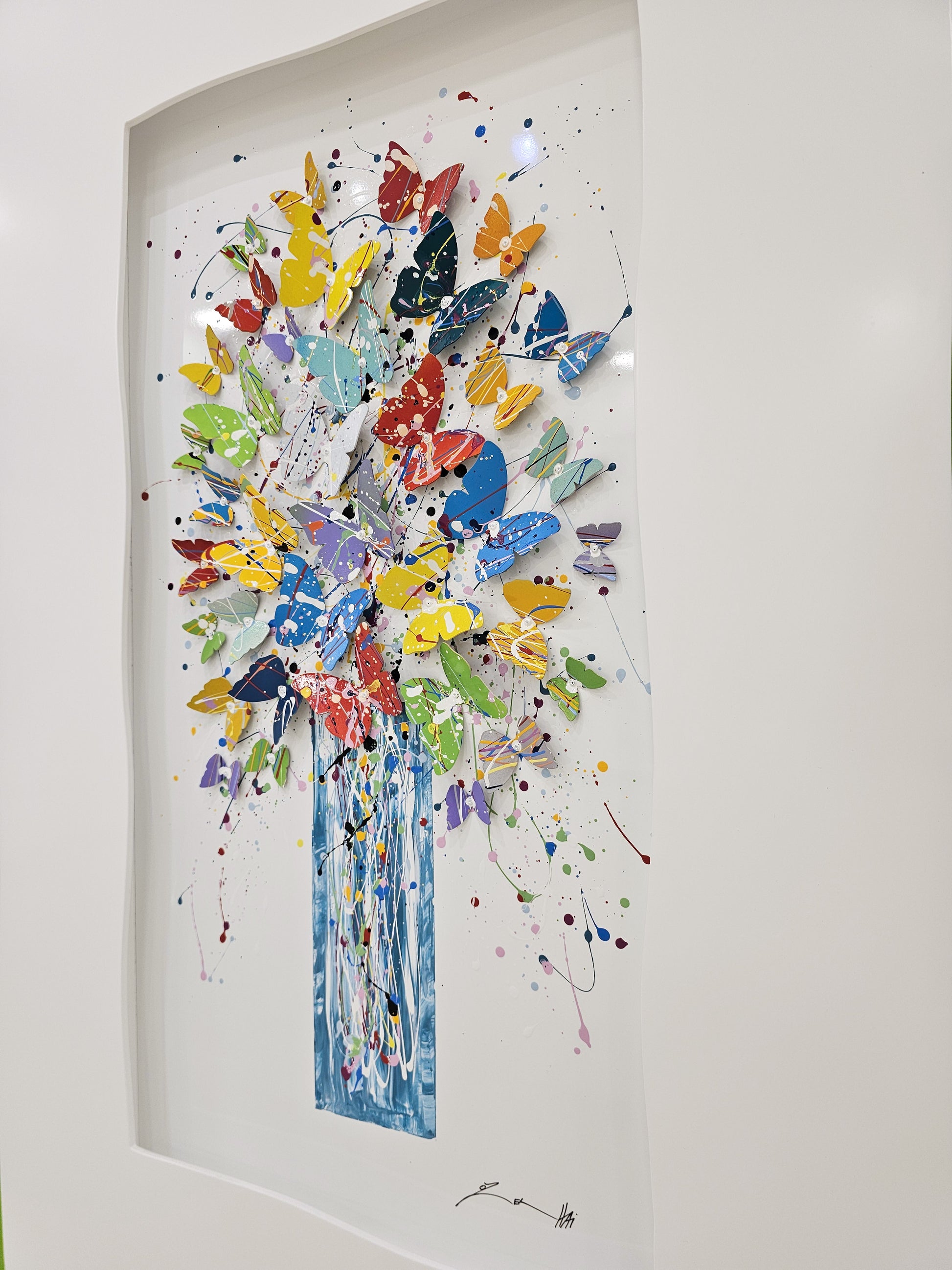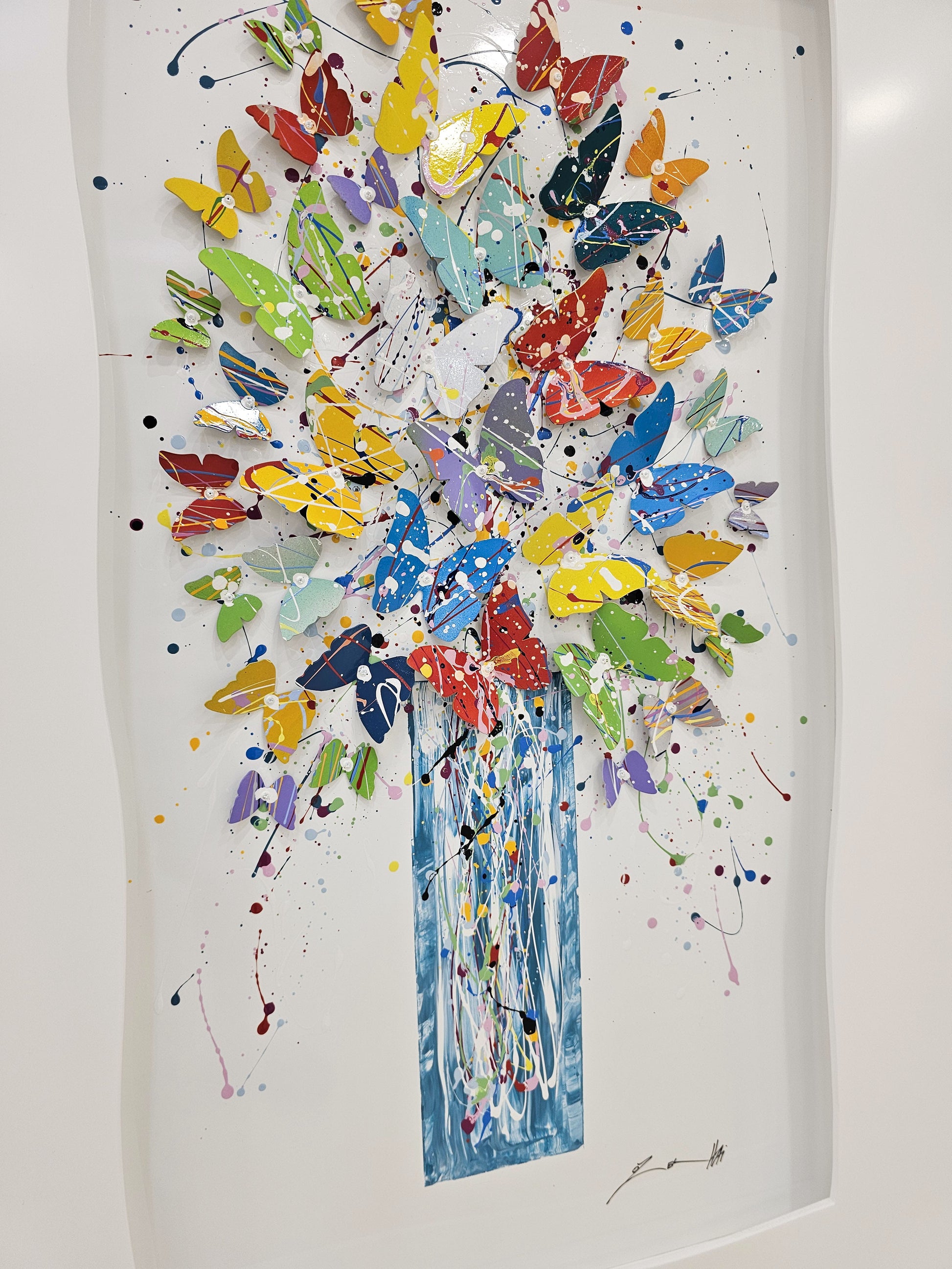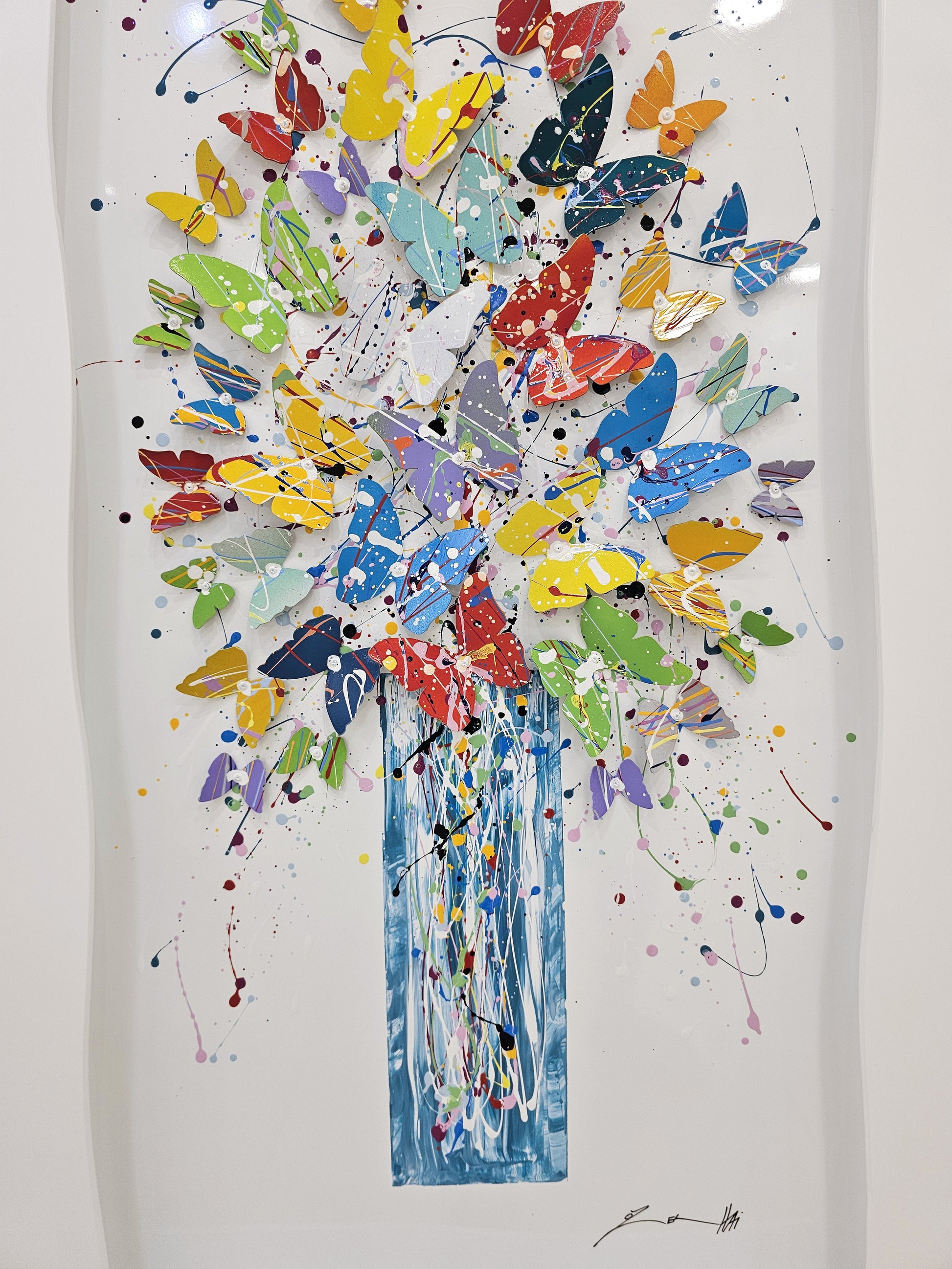 Blue Roots by Oz El Hai is a radiant interpretation of the Tree of Life, a timeless symbol of growth, connection, and spirituality in Jewish and Israeli culture. The vibrant butterflies form the flourishing branches, each one alive with motion and color, while the deep blue trunk and roots symbolize strength, stability, and resilience.